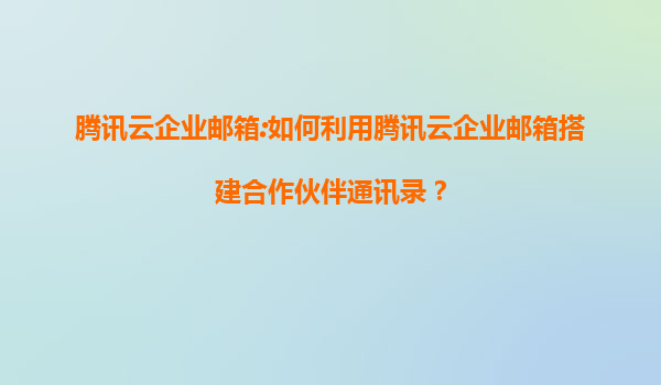 腾讯云企业邮箱:如何利用腾讯云企业邮箱搭建合作伙伴通讯录 引言 在企业日常运营中,高效管理合作伙伴的联系信息是协同办公的重要环节。腾讯云企业邮箱不仅提...