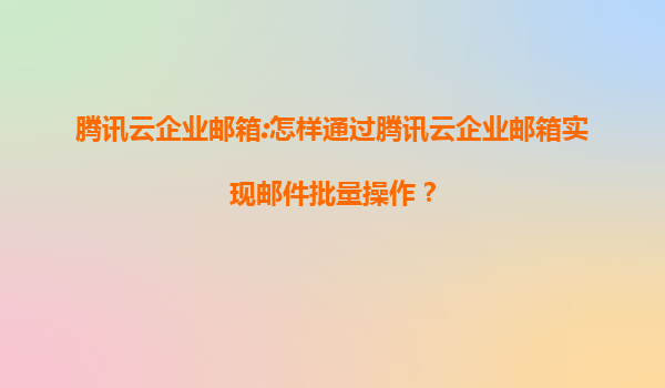 2025-08-02腾讯云企业邮箱:如何通过邮件批量操作提升企业效率 一、腾讯云企业邮箱的批量操作功能概述 腾讯云企业邮箱作为企业级邮件服务解决方案,提供了强大的批量操作功能,帮助企业高效管理邮件通信。通过批量...
