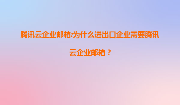 2025-08-02为什么进出口企业需要腾讯云企业邮箱? 在全球化商业竞争中,进出口企业需要高效、安全、稳定的沟通工具来支撑业务拓展。腾讯云企业邮箱凭借其强大的技术实力和全球化服务能力,成为众多企业的首选解决方案。 1....