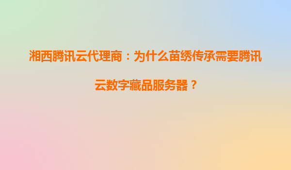 湘西腾讯云代理商:为何苗绣传承需要腾讯云数字藏品服务器? 一、苗绣传承的现实困境 湘西苗绣作为国家级非物质文化遗产,承载着苗族千年的文化基因与艺术智慧...