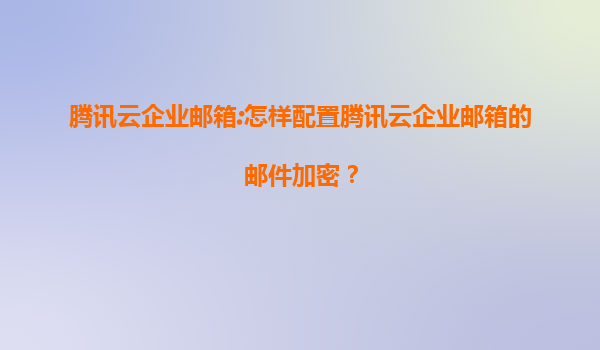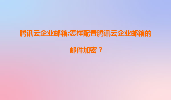 2025-08-01腾讯云企业邮箱:如何配置邮件加密及核心优势解析 一、腾讯云企业邮箱简介 腾讯云企业邮箱是腾讯云基于多年邮件服务经验推出的专业企业级邮箱解决方案,具备高安全性、稳定性和智能...