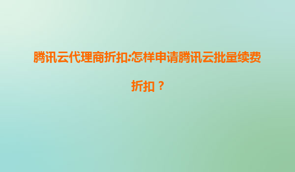 2025-07-31腾讯云代理商折扣:怎样申请腾讯云批量续费折扣? 一、腾讯云与代理商合作的优势 腾讯云作为国内领先的云计算服务提供商,凭借其强大的技术实力和丰富的产品线,为企业用户提供了稳...