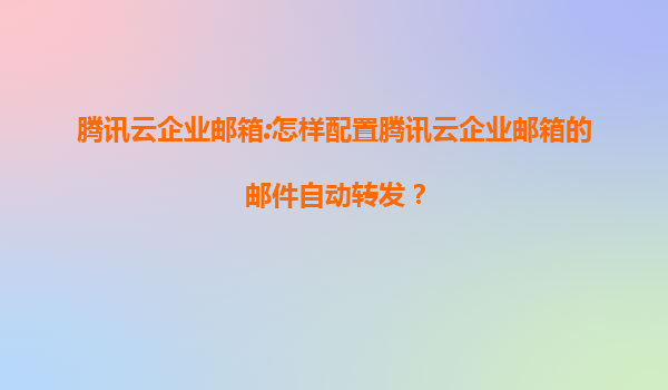 2025-07-28腾讯云企业邮箱:如何配置邮件自动转发功能 一、腾讯云企业邮箱简介 腾讯云企业邮箱是基于腾讯多年邮件系统运营经验推出的专业企业级邮箱服务,提供稳定、安全、高效的邮件通信解决方案。作为国内领先的云...