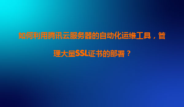 2025-11-06如何利用腾讯云服务器的自动化运维工具高效管理大量SSL证书部署 一、腾讯云在SSL证书管理中的核心优势 腾讯云凭借其完善的云服务生态和自动化运维工具链,为批量SSL证书管理提供了显著优势: ...