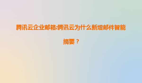 邮件智能摘要:腾讯云企业邮箱的智能化升级 随着信息爆炸时代的到来,企业邮箱用户每天需要处理大量邮件,如何快速提取关键信息成为效率提升的痛点。腾讯云企业邮箱推出的邮件智能摘要功能,正是为了解决这一难题...