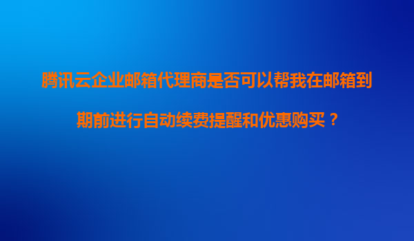2025-11-06腾讯云企业邮箱代理商:您的自动续费提醒与优惠购买助手 一、腾讯云企业邮箱的核心优势 腾讯云企业邮箱作为国内领先的企业级邮箱服务,以高安全性、稳定性和丰富的功能著称。其核心优势包括: ...
