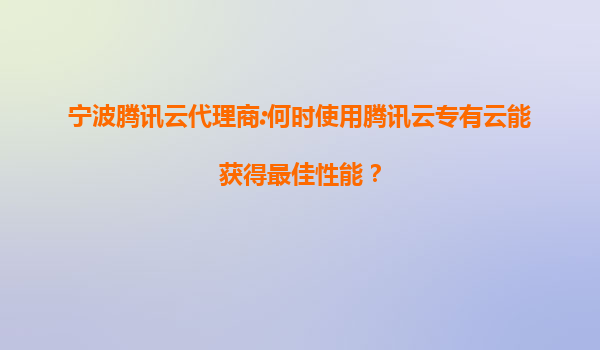 2025-07-25宁波腾讯云代理商:何时使用腾讯云专有云能获得最佳性能? 在当今数字化时代,企业对于云计算的需求日益增加,尤其是在数据安全、业务灵活性和性能优化方面,企业需要选择最适合自身需求的云服务方案。腾讯云作...