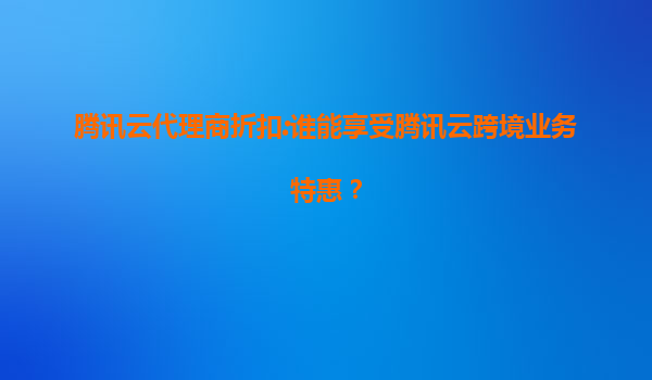 2025-07-23腾讯云代理商折扣:谁能享受腾讯云跨境业务特惠? 一、腾讯云代理商折扣政策概述 腾讯云作为国内领先的云计算服务提供商,为吸引更多企业客户,特别推出了代理商折扣政策。这一政策旨在通过代理商渠道...