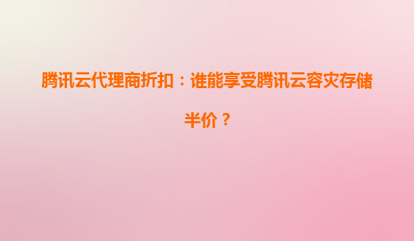 2025-07-22腾讯云容灾存储半价福利:哪些用户可享受及产品核心优势解析 一、腾讯云代理商半价政策惠及对象 腾讯云针对容灾存储产品推出代理商专属半价折扣,主要面向以下两类合作伙伴:一是签约级代理...