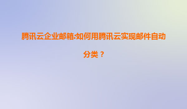 2025-07-22腾讯云企业邮箱邮件自动分类功能解析 企业邮箱智能化管理的必要性 在数字化转型的浪潮中,邮件作为企业沟通的核心工具,日均处理量呈指数级增长。传统手工分类方式效率低下且易出错,腾讯云企业邮箱通...