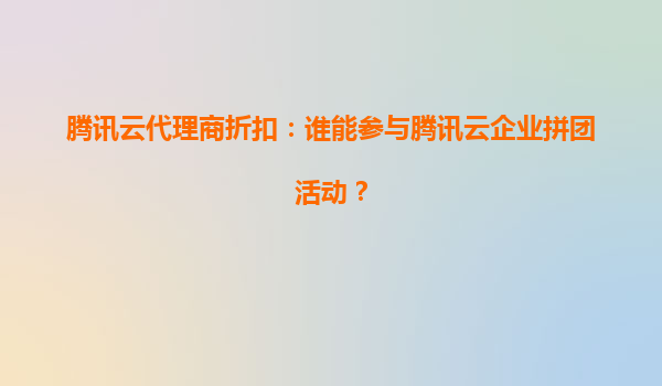 2025-07-21腾讯云代理商折扣:谁能参与腾讯云企业拼团活动? 一、腾讯云的六大核心优势 作为国内领先的云计算服务商,腾讯云凭借以下优势成为企业数字化转型的首选: 全球基础设施...
