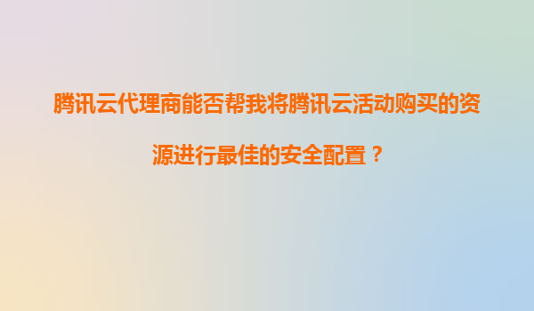 2025-11-06腾讯云代理商能否帮我将腾讯云活动购买的资源进行最佳安全配置? 一、腾讯云安全能力与代理商服务的协同优势 腾讯云本身具备完善的安全防护体系,涵盖DDoS防护、Web应用防火墙(WAF)、主机...