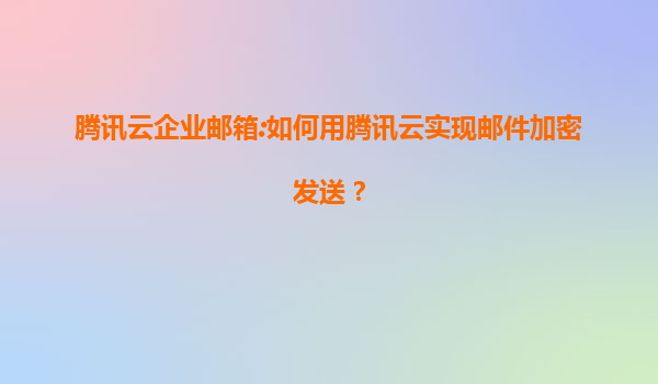 2025-07-21腾讯云企业邮箱:如何用腾讯云实现邮件加密发送? 一、邮件加密的重要性 在当今数字化时代,企业邮件往来频繁,涉及大量的敏感信息(如合同、财务数据、客户隐私等)。若邮件内容未加密传输,可能被黑客截...