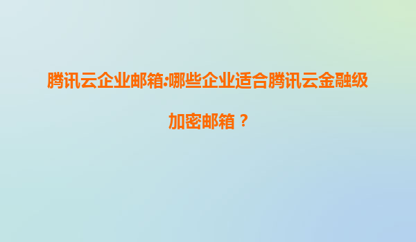 2025-07-20腾讯云企业邮箱:哪些企业适合腾讯云金融级加密邮箱? 一、腾讯云企业邮箱的核心优势 腾讯云企业邮箱基于腾讯雄厚的技术积累和丰富的企业服务经验,提供了高效、安全、稳定的邮件服务,尤其金融级加密功能...