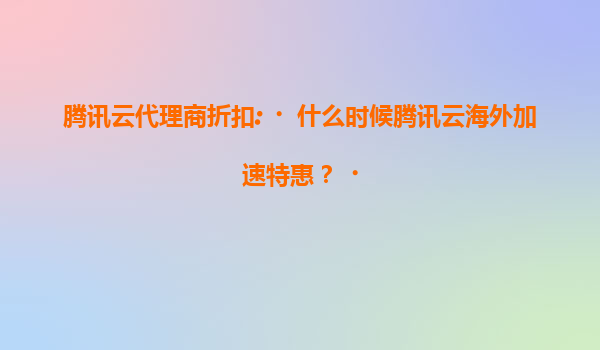 2025-07-17腾讯云海外加速特惠活动时间解析 近期腾讯云代理商渠道释放消息,海外节点加速服务可能将于每年6月、11月(周年庆及双十一期间)推出限时特惠。建议关注官网公告或联系代理商获取最新折扣信息,部分新用户首购还...