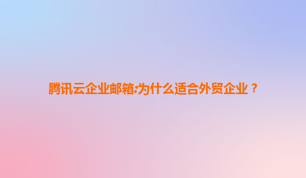 2025-07-15腾讯云企业邮箱:外贸企业的全球化通信解决方案 一、外贸企业的核心需求与挑战 外贸企业通常需要频繁与国际客户、供应商沟通,对邮箱系统的稳定性、安全性和全球化支持有极高要求。传统...