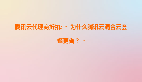 腾讯云混合云套餐为何更节省成本? 在数字化转型的浪潮中,企业上云已成为必然趋势,而如何选择适合自己的云服务方案则显得尤为重要。腾讯云混合云套餐凭借其独特的优势,成为许多企业降本增效的首选。本文将详...