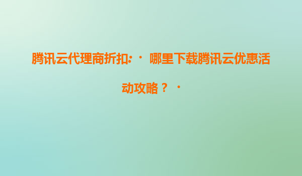 腾讯云代理商折扣:哪里下载腾讯云优惠活动攻略? 随着云计算的普及,越来越多的企业和个人开始选择腾讯云作为其IT基础设施的首选。腾讯云不仅提供了稳定、高效的云计算服务,还通过代理商渠道为客户...