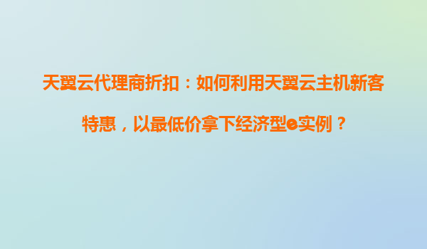 2025-10-22天翼云代理商折扣攻略:如何以最低价拿下经济型e实例? 一、天翼云主机新客特惠政策解析 天翼云作为中国电信旗下云计算品牌,长期为新用户提供极具吸引力的首购优惠。当前经济型e实例针对新客的优...