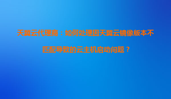 2025-10-22天翼云代理商:如何处理因天翼云镜像版本不匹配导致的云主机启动问题? 一、天翼云的优势 天翼云作为中国电信旗下的云计算品牌,凭借其强大的基础设施和技术实力,为企业用户提供了稳定...