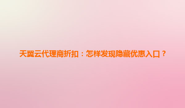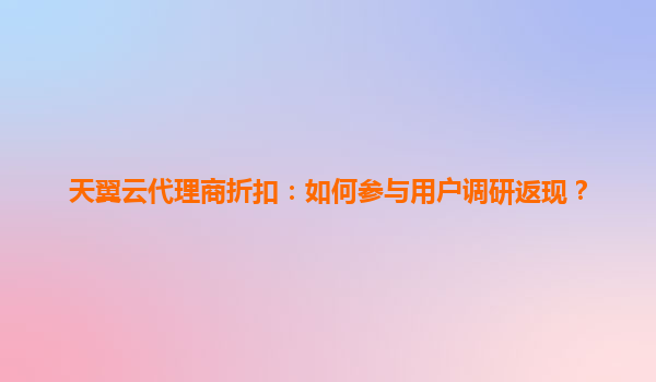 2025-06-01天翼云代理商折扣:如何参与用户调研返现? 一、天翼云代理商折扣的核心价值 作为中国电信旗下的云计算品牌,天翼云为代理商提供极具竞争力的折扣体系,其核心优势在于: ...