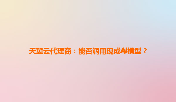 2025-06-01天翼云代理商:轻松调用现成AI模型,开启智能业务新篇章 开箱即用的AI模型库 作为天翼云代理商,您无需从零构建复杂算法,即可通过天翼云AI开放平台调用超过50种预训练成熟模型。平台提供计算机视觉、自然语言...