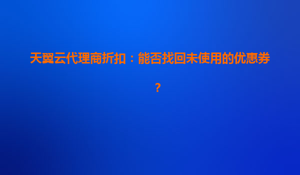 2025-06-01天翼云代理商折扣:未使用的优惠券能否找回?全面解析与解决方案 一、天翼云代理商折扣体系的核心价值 作为中国电信旗下的云计算服务品牌,天翼云通过代理商体系为企业用户提供极具竞争...