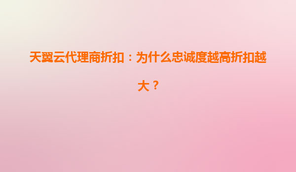 2025-06-01天翼云代理商折扣机制解析:为什么忠诚度越高折扣越大? 一、天翼云生态系统的共赢逻辑 在云计算市场竞争白热化的今天,天翼云通过独特的代理商体系构建了强大的生态护城河。其阶梯式折...