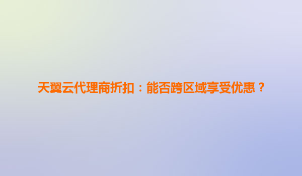2025-06-01天翼云代理商折扣:能否跨区域享受优惠?深度解析与策略指南 一、引言:跨区域优惠的核心疑问 随着企业多云部署和分布式业务的发展,"天翼云代理商折扣能否跨区域使用"成为用户焦点问题。本文结合天翼云技术特...