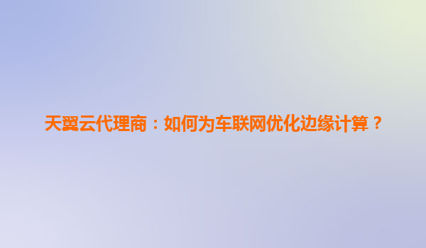 2025-06-01天翼云代理商:如何为车联网优化边缘计算? 一、车联网与边缘计算的战略融合 车联网通过实时收集车辆位置、速度、路况等海量数据实现智能交通管理,但传统云计...