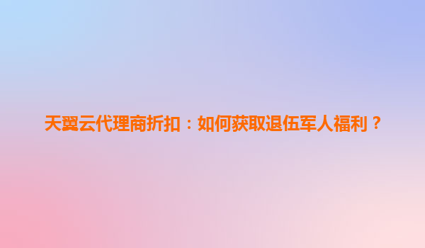 天翼云代理商专属福利:退伍军人尊享计划指南 天翼云致敬卫国英雄 作为国家云服务的核心力量,天翼云始终铭记退伍军人为国家安全作出的卓越贡献。通过全国代理商网络,我们特别推出"戎耀计划",为...