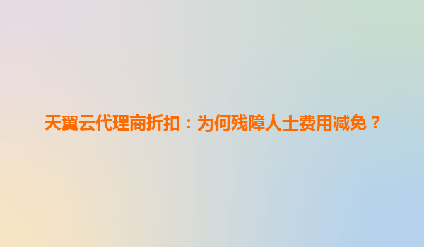 2025-06-01天翼云代理商折扣与残障人士费用减免:科技普惠背后的责任担当 一、天翼云代理商折扣:构建共赢生态 作为中国电信旗下云计算品牌,天翼云通过代理商体系为合作...