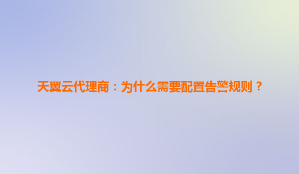 2025-05-31天翼云代理商:为什么需要配置告警规则? 一、告警规则:云服务运维的"神经中枢" 在数字化转型加速的今天,天翼云代理商管理的云资源规模呈指数级增长。配置告警规则相当于为云环境安装"...