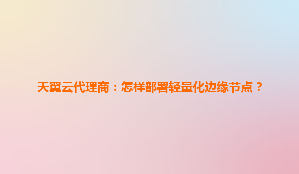 2025-05-31天翼云代理商指南:高效部署轻量化边缘节点的全流程解析 边缘计算新机遇轻量化节点正当其时 在万物智联时代,边缘计算成为数字化转型的关键支柱。天翼云轻量化边缘节点解决方案,通过将计算能力下沉...