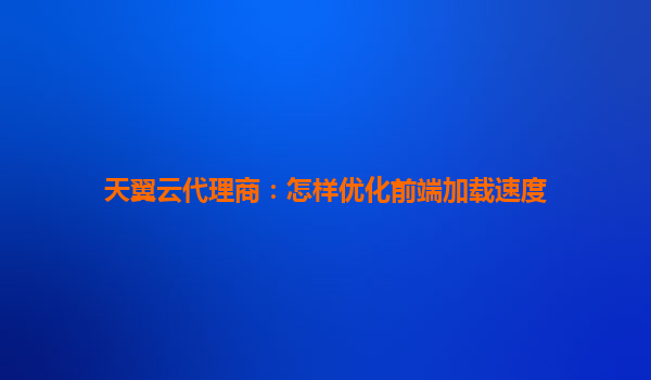 2025-05-30天翼云代理商实战指南:五大策略优化前端加载速度 为什么前端加载速度决定业务成败? 在数字化转型浪潮中,网页加载速度每延迟1秒会导致转化率下降7%。作为天翼云代理商,我们深谙速度优...