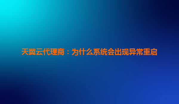 2025-05-29天翼云代理商视角:解析系统异常重启的原因与应对之道 一、异常重启:数字化转型中的潜在风险 当企业业务系统突然中断重启,损失的不仅是运营连续性,更可能造成数据丢失、客户信任危机等连锁反应。作...