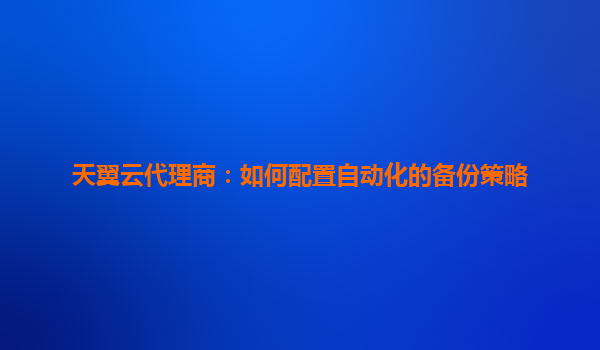 2025-05-28天翼云代理商:如何配置自动化的备份策略 引言:自动化备份的核心价值 在数字化转型时代,数据已成为企业的核心资产。天翼云代理商通过配置自动化备份策略,不仅能帮助客户规避数据丢失...