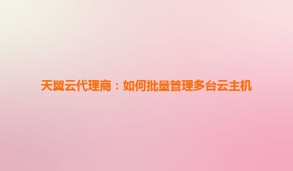 2025-05-28天翼云代理商如何高效批量管理多台云主机 一、天翼云批量管理的核心优势 天翼云为代理商提供了完善的批量管理能力,其基于分布式架构和智能运维体系,支持通过统一控制台或API接口对多台云主机进行集...