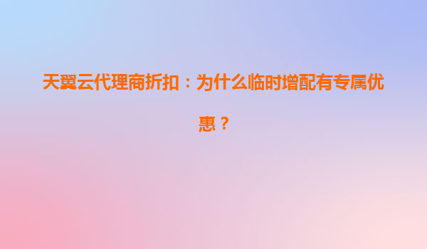 2025-05-26天翼云代理商折扣:临时增配专属优惠的深层逻辑解析 一、为什么企业需要"临时增配"服务? 在数字化转型进程中,企业常面临三类典型场景: 业务突发性增长:电商大促期间流量峰值可达日常...