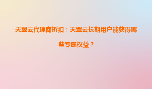 2025-05-23天翼云长期用户的专属权益与核心优势 一、长期用户享专属折扣,成本优化更灵活 作为中国电信旗下的云计算服务品牌,天翼云为长期合作伙伴提供阶梯式代理商折扣政策。合作周期越长、资源用量越大,用户可享...