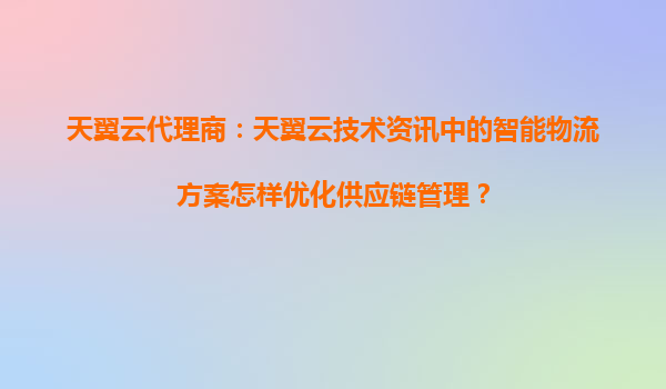 2025-05-22天翼云智能物流方案:优化供应链管理的数字化转型利器 一、供应链管理面临的挑战与智能化需求 在全球化竞争与消费者需求快速变化的背景下,传统供应链面临库存周转效率低、响应速度慢、协同能力弱等痛...