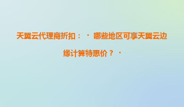 2025-05-22天翼云边缘计算特惠价:哪些地区可享?如何通过代理商获取更大优势? 一、天翼云边缘计算的核心优势 作为中国电信旗下的云计算品牌,天翼云凭借以下优势在边缘计算领域占据领先地位: 超...