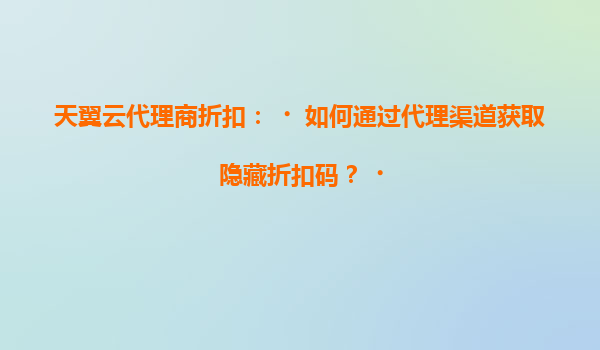 2025-05-22如何通过代理渠道获取天翼云隐藏折扣码? 一、天翼云的核心优势解析 作为中国电信旗下的云计算品牌,天翼云凭借以下优势成为企业上云的首选: 安全可信赖:通过国家等保三级认证,提供数...