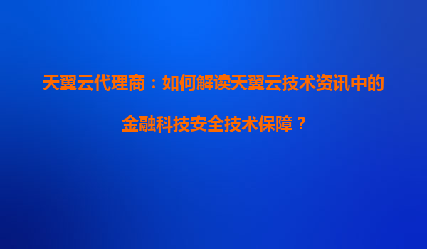 2025-05-22天翼云代理商:如何解读天翼云技术资讯中的金融科技安全技术保障? 一、金融科技安全的重要性与行业挑战 随着金融行业数字化转型加速,数据安全、交易风险防控和合规性成为金融机构的核心诉求。金融科技涉...