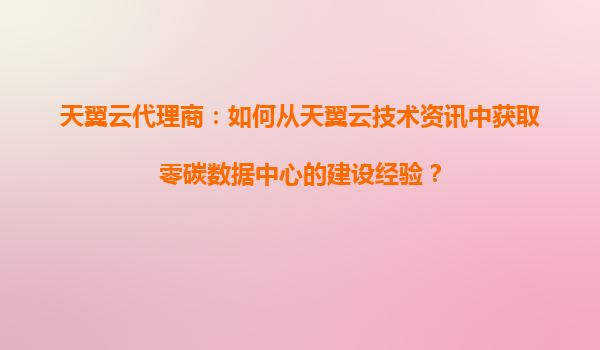 2025-05-22天翼云代理商:如何从天翼云技术资讯中获取零碳数据中心的建设经验? 一、零碳数据中心建设的行业背景与重要性 随着“双碳”目标的推进,数据中心作为高能耗行业亟需向绿色低碳转型。零碳数据中心通过可再...