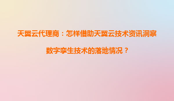 2025-05-22天翼云代理商:如何借助天翼云技术洞察数字孪生技术的落地实践? 一、数字孪生技术的价值与挑战 数字孪生(DigitalTwin)作为物理世界与数字空间的桥梁,正在工业制造、智慧城市...