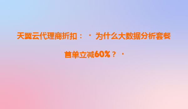 2025-05-22天翼云大数据分析套餐首单立减60%:技术实力与普惠服务的双重优势 一、首单立减60%背后的逻辑 作为中国电信旗下云计算服务品牌,天翼云近期针对大数据分析套餐推出代理商首单立减60%的优惠政策,这一举...