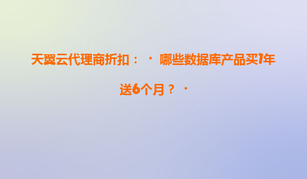 2025-05-22天翼云代理商数据库产品限时特惠:买1年送6个月! 作为中国电信旗下的云计算服务品牌,天翼云凭借其强大的基础设施和央企级安全保障,持续为企业数字化转型提供优质服务。而通过天翼云代理商合作,...