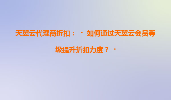 2025-05-22天翼云代理商折扣:如何通过会员等级提升折扣力度? 一、天翼云的核心优势解析 作为中国电信旗下的云计算服务品牌,天翼云凭借以下优势成为企业数字化转型的首选合作伙伴: ...