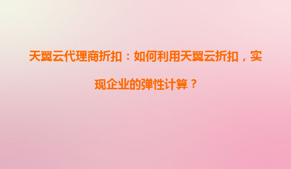 2025-05-19天翼云代理商折扣:如何利用天翼云折扣,实现企业的弹性计算? 一、天翼云的核心优势解析 作为中国电信旗下的云计算品牌,天翼云凭借其独特的资源优势和技术能力,为企业提供了以下核心服务价值: ...